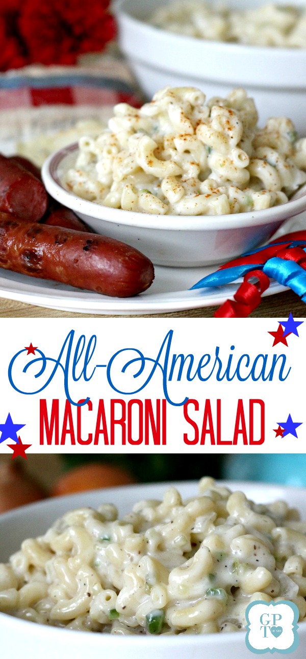 Light up the grill and bring out the hotdogs, burgers, chicken or steaks. Add the sides and get ready to celebrate! Memorial Day is the kick-off of the backyard get-togethers that continues through Labor Day with the 4th of July right in the middle. What is one favorite side that shows up at each celebration? Yes, All-American Macaroni Salad.