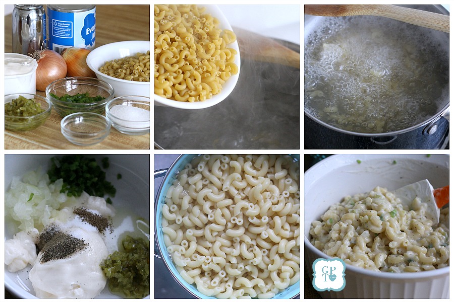 Besides being a really flavorful macaroni salad, it is quick and easy to make. If you are short on time and need to take a dish along, make this. I love, love potato salad but this is so much easier.