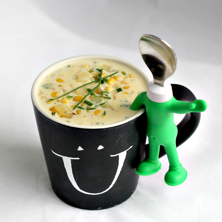 I've never been a fan of corn chowder but it sure does look good in the picture. I think anything would be fun to eat with a cute little spoon like that.