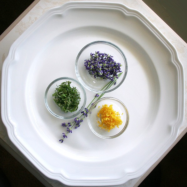 Toss in 1-2 tablespoons fresh culinary lavender, the chopped mint and the lemon zest.