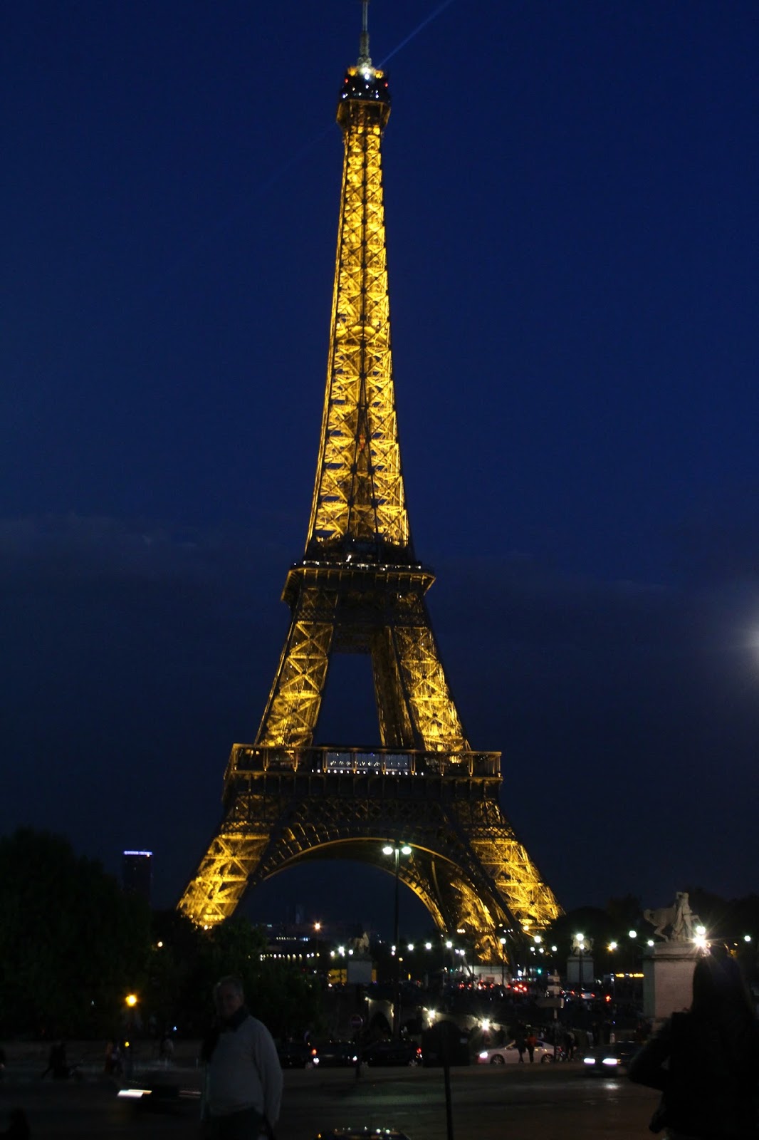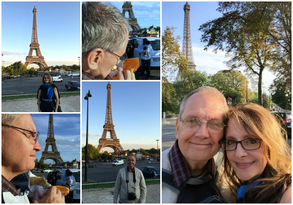 It was still daylight when we arrived so we found a bench where we sat, rested, took in the sights and John enjoyed a Parisian Crêpe beneath the Eiffel Tower. How iconic is that! 🙂