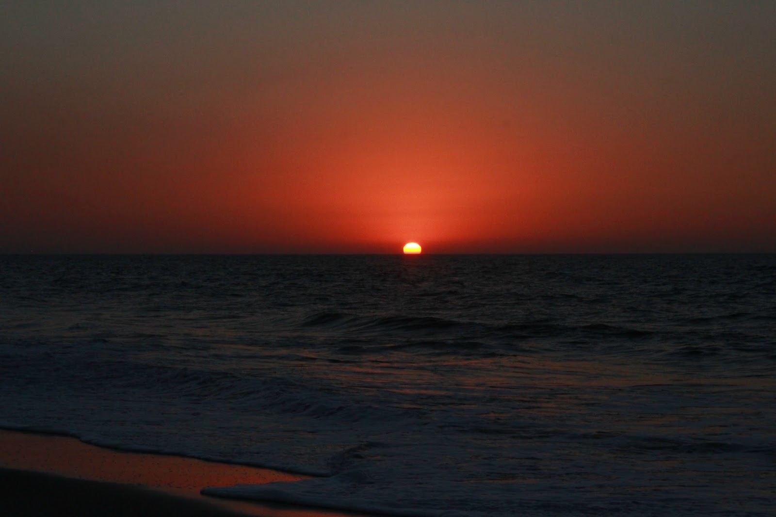 This is so different than what we see over the ocean here on the West Coast. When darkness begins to go away we see bits of light peeking over the mountains and lighting the waves. Later we are blessed to watch the skies turn many shades of color as the sun begins to sink into the ocean. Sunset – and then, suddenly, it's gone. It's a favorite time of day at the Oregon Coast for me. Someday I hope to watch the sun rise above the ocean on the eastern shore.