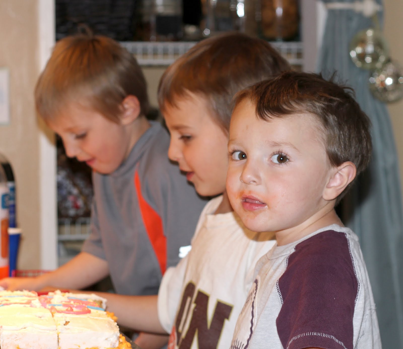 Silas, Josh with Caleb, Josh’s dad Albert and my John