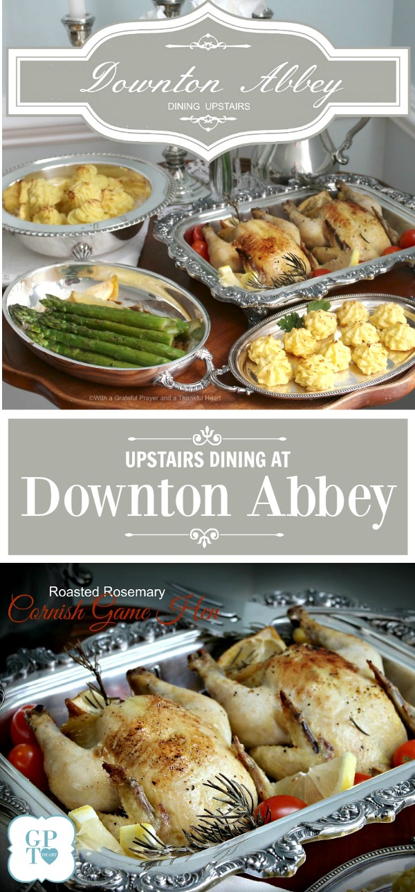 Cornish Game Hen is a very small domestic chicken and would had been familiar to both the aristocrats and their staff and considered a delicacy. I rather consider it a delicacy as well, since I could had bought a good size oven roaster/stuffer for the same price. But, these tiny poultry are cute and tasty too, especially served with the pan juice reduction.