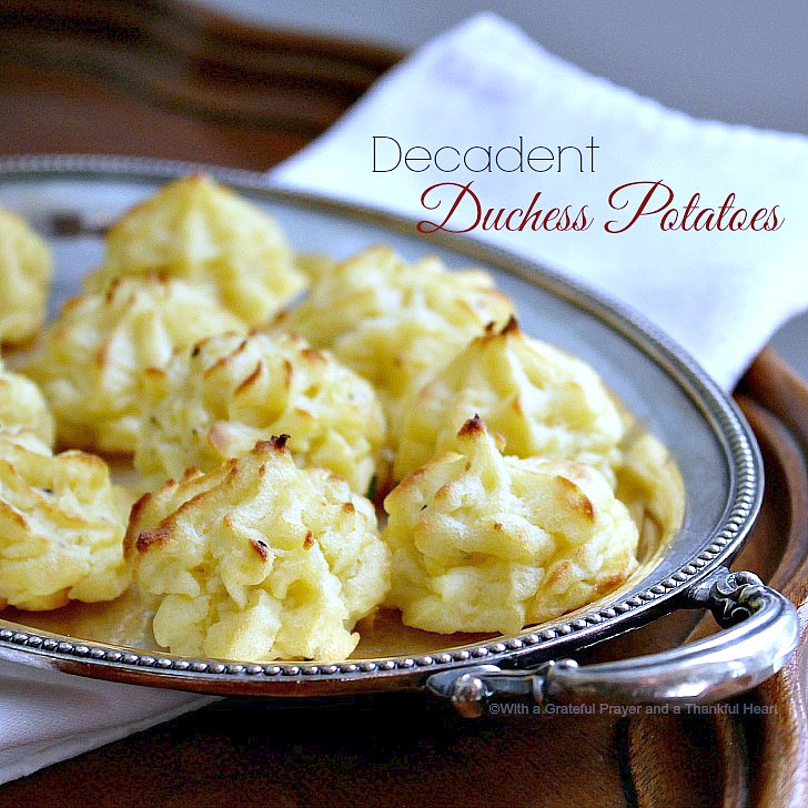 These fancy little potato bites were made by piping the mixture onto a baking sheet, drizzled with melted butter, baked and broiled until golden brown. They taste just as special as they look!
