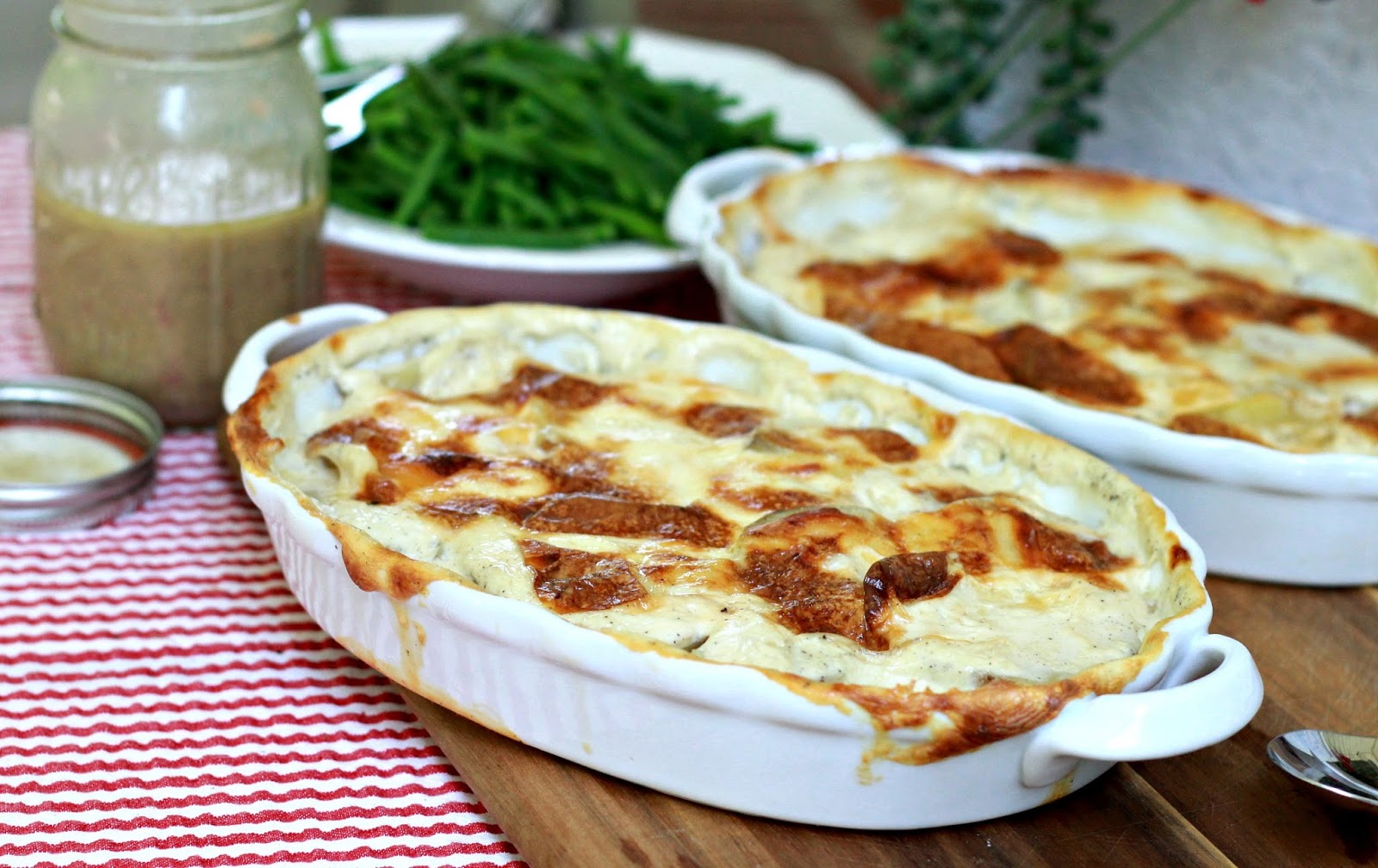 Pour the potato and milk mixture into the buttered roasting dish. Sprinkle with the grated cheese.