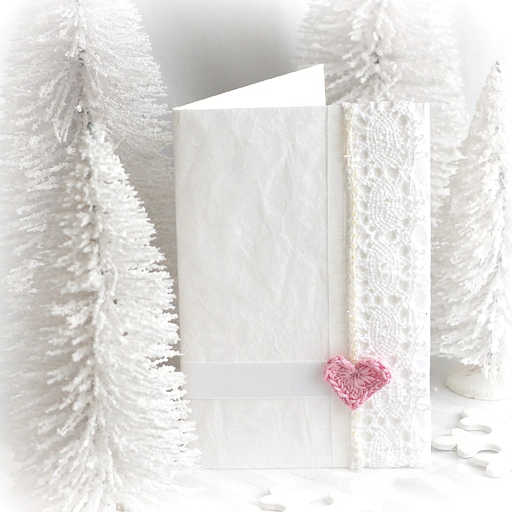 oh pretty cards. I love them both, the second one really caught my eye. Those tiny hearts are adorable and I can't imagine that they would take very long to make either. Although since it's been quite some time since I've picked up a crochet hook I might need a refresher…lol