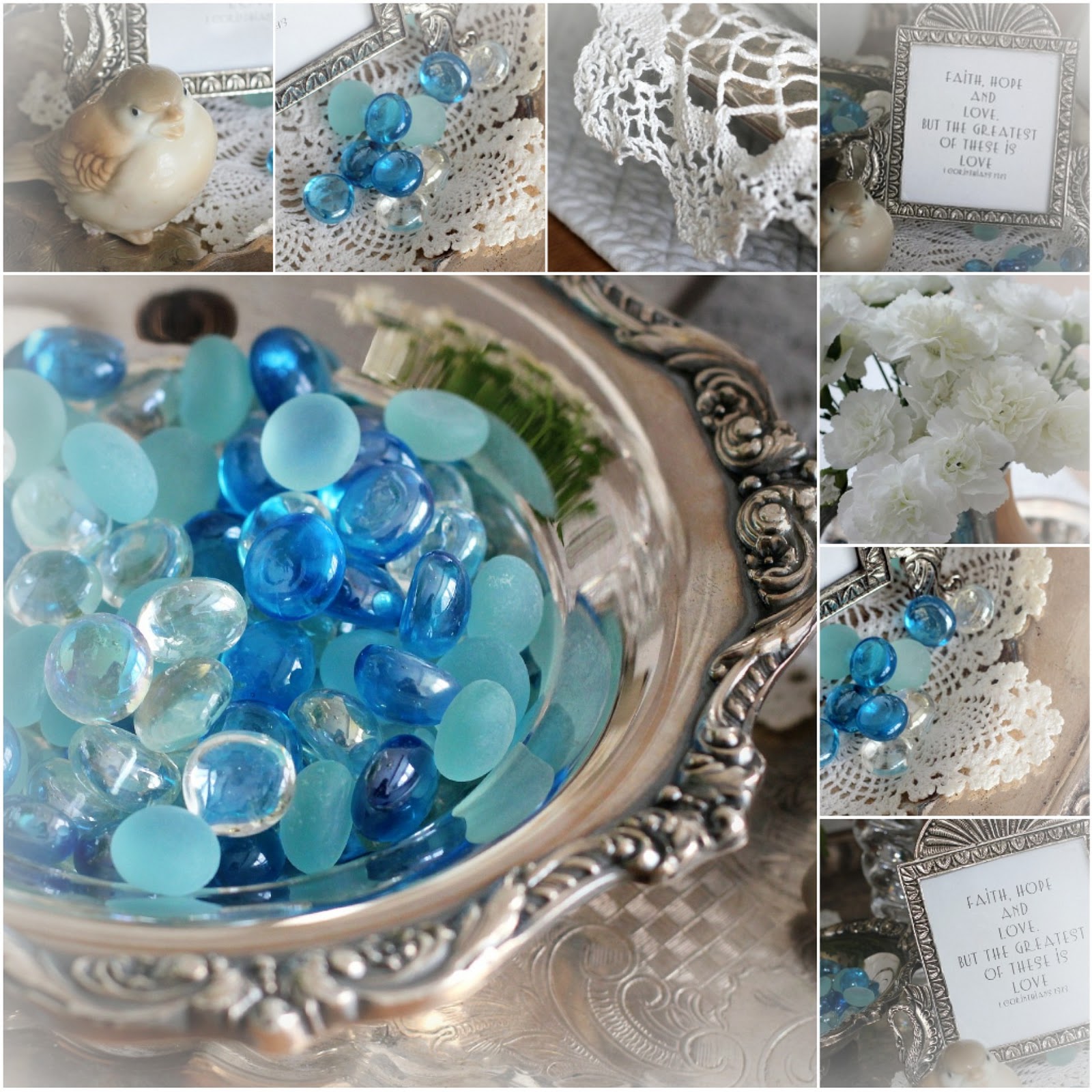 I like the idea of blue and white Valentine decorations. The pictures in the mosaic are all very lovely.