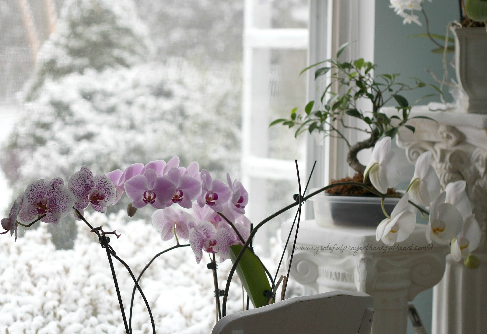 I like your orchids and the white ones are an incredibly pure white. I have 2 outdoor orchids that stay on the patio year round. Your indoor orchids are much more varied.
